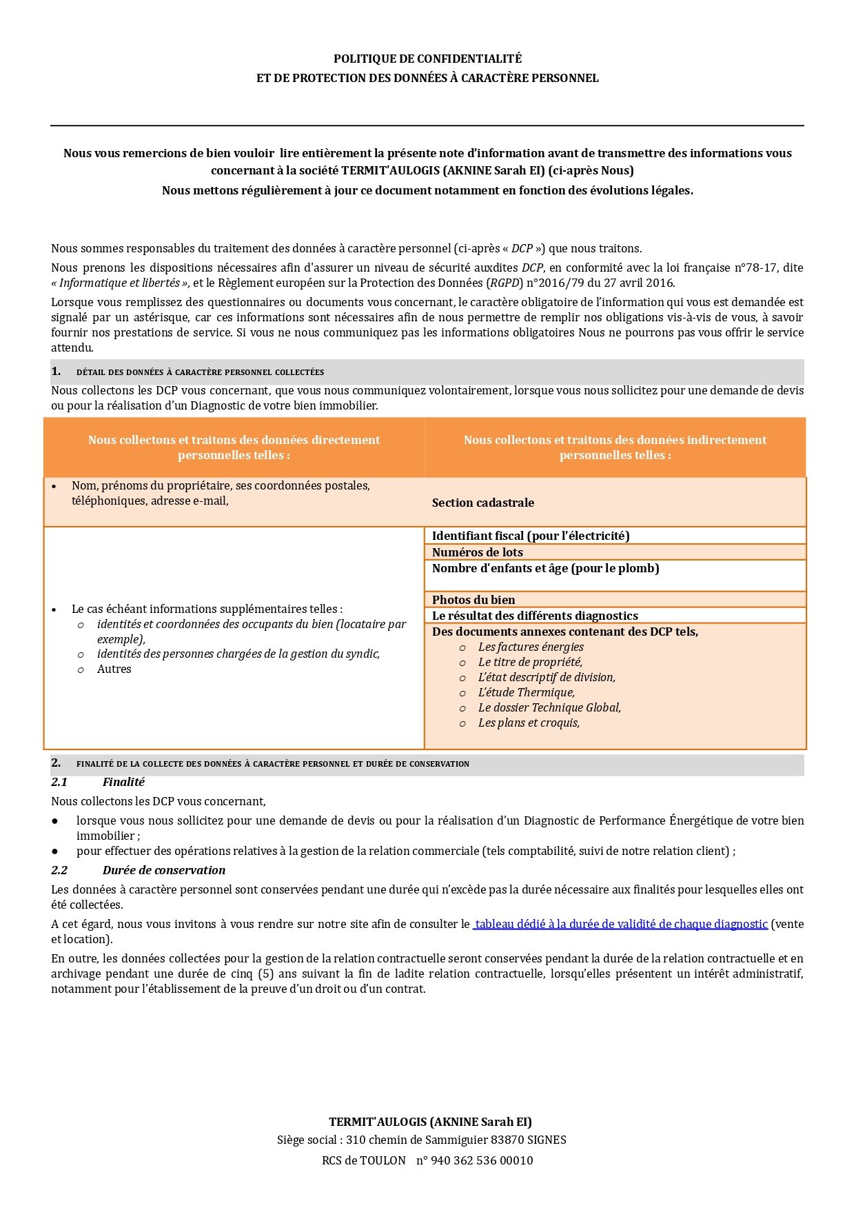 Politique de confidentialité